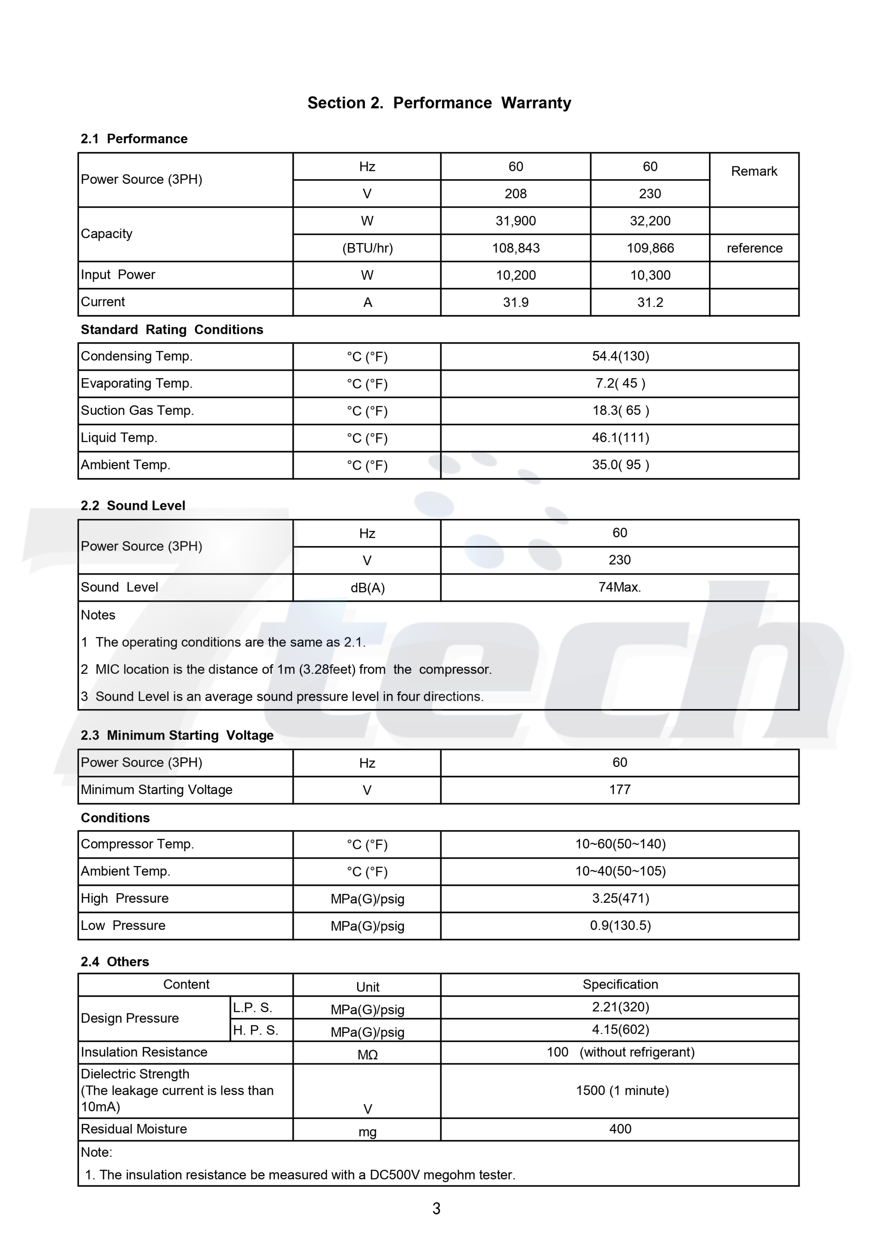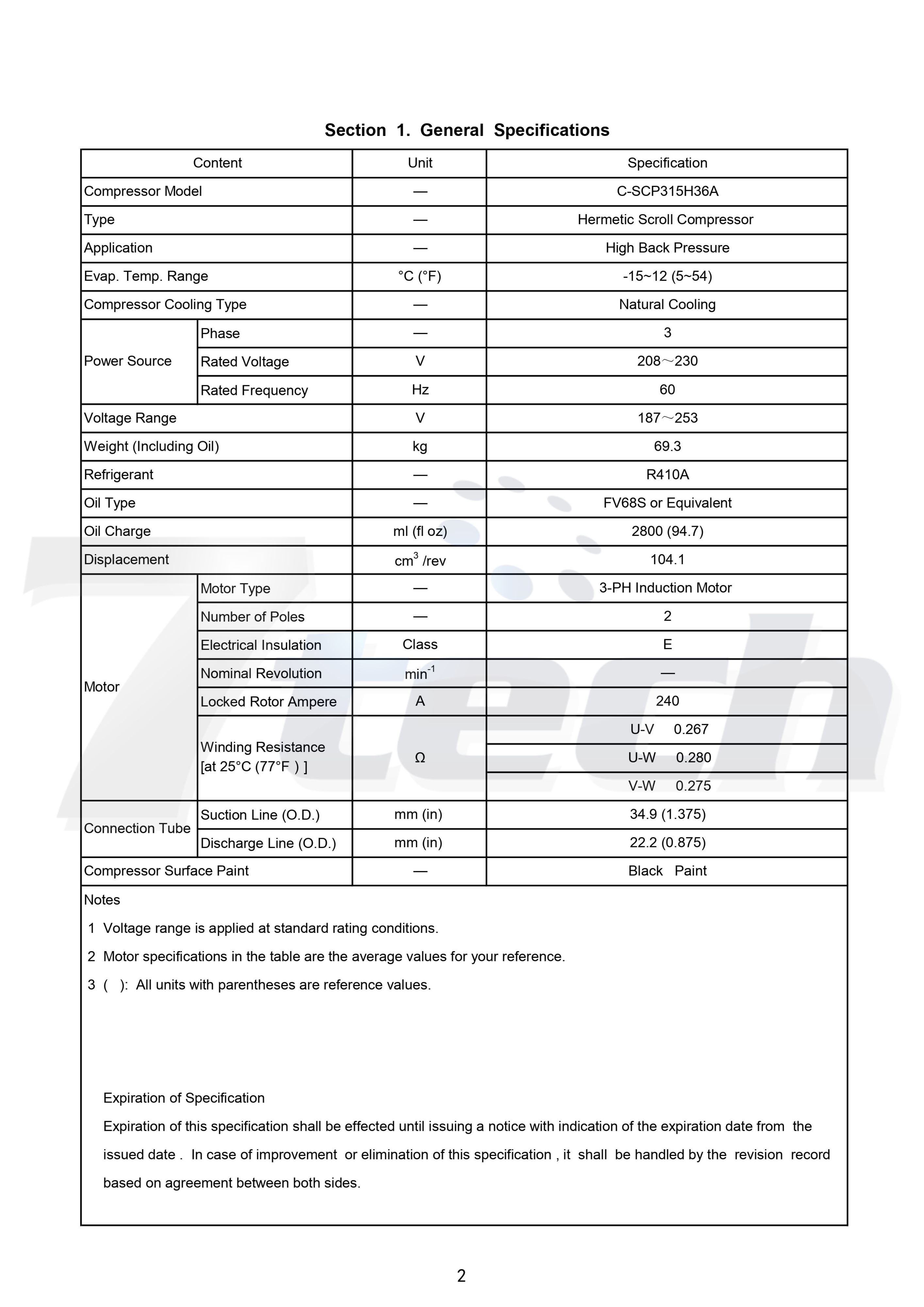 - Condición estándar: Cond. Temp. 54.4°C / Evap. Temp. 7.2°C
