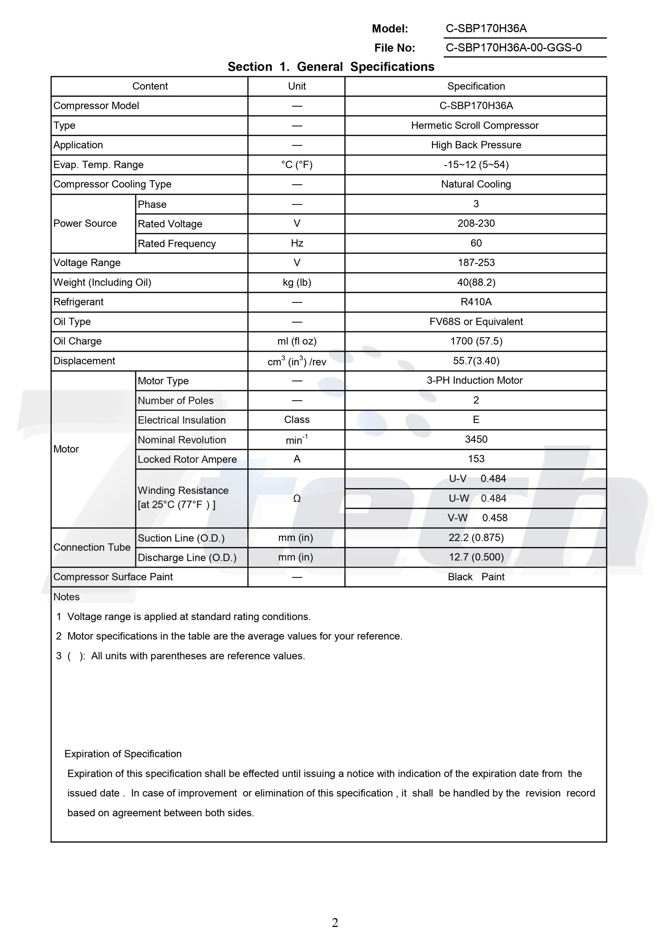 - Condición estándar: Cond. Temp. 54.4°C / Evap. Temp. 7.2°C