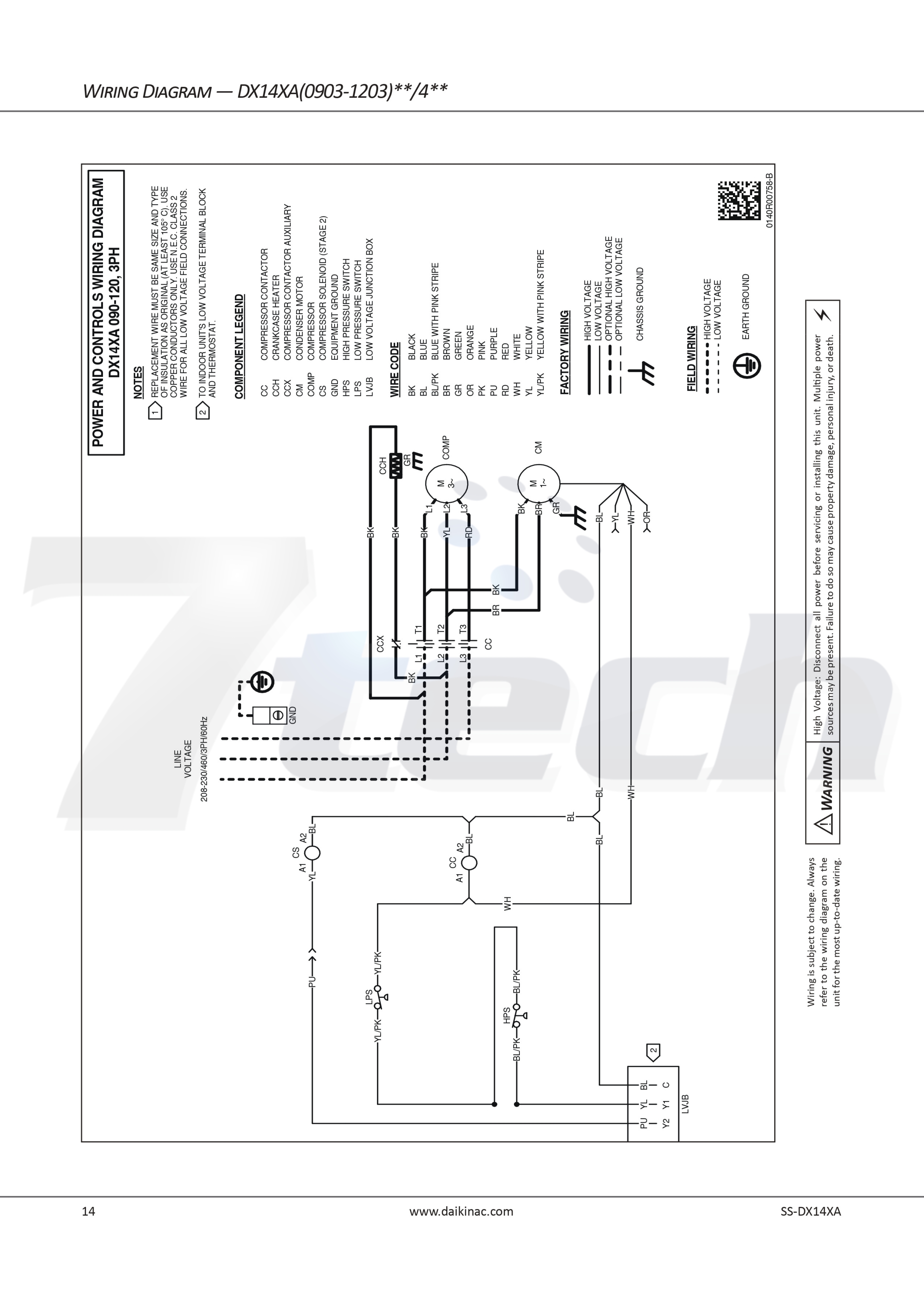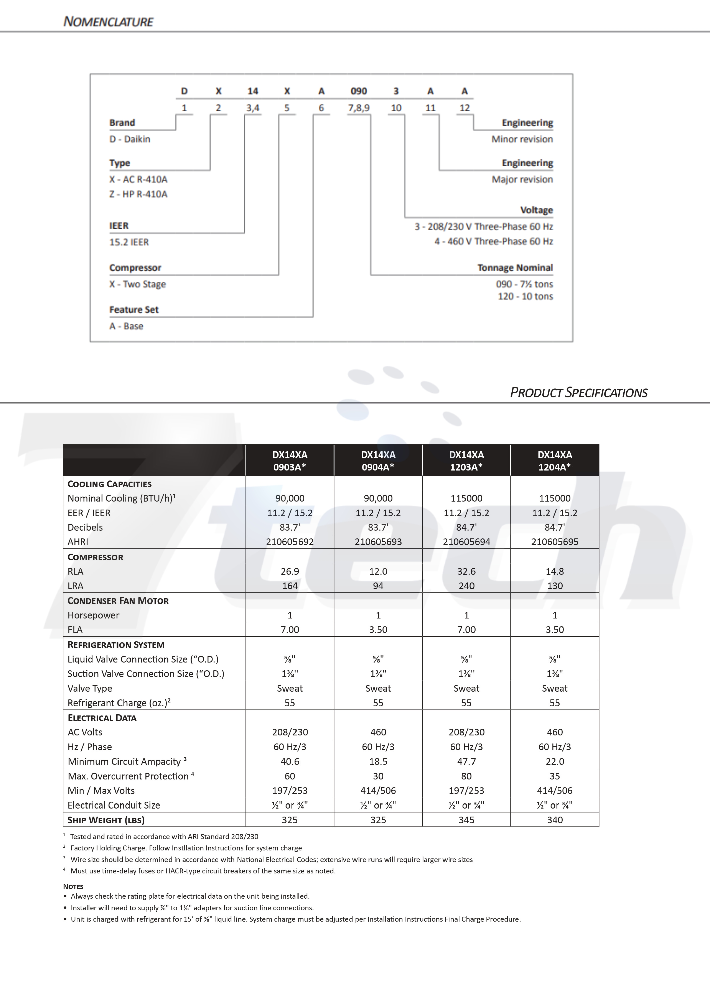 Condensadora DAIKIN Descarga Vertical 120K BTU 10TON 1C Ph3 208-230V 60Hz R410A