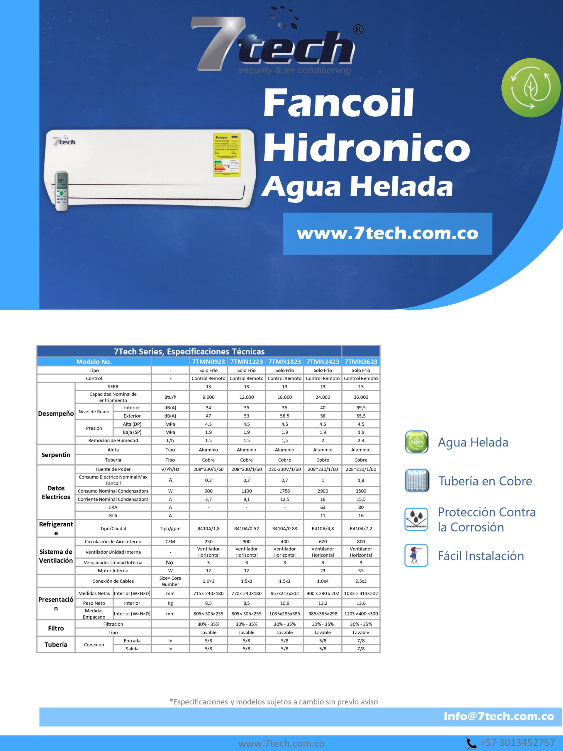 ✅ Eficiencia Energética: Al utilizar agua helada o caliente en lugar de refrigerantes directos, reduce el consumo eléctrico y el impacto ambiental.