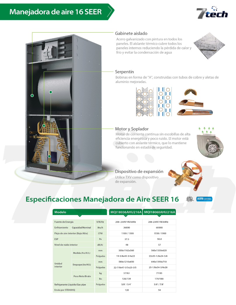 • Capacidad: 60,000 BTU/h (5TR)